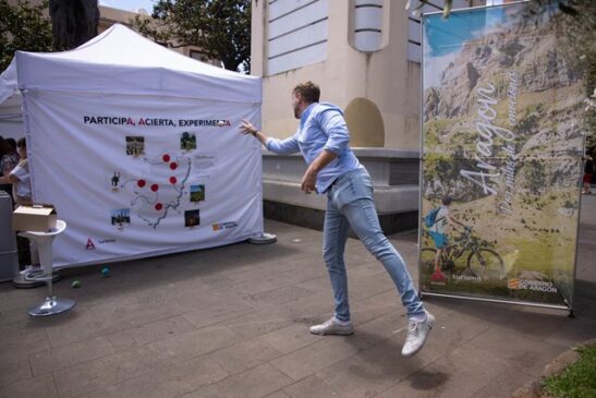 La programación a pie de calle se desarrollará entre los días 23 y 25 de mayo en la plaza de la Concepción de San Cristóbal de La Laguna, en la isla de Tenerife, y entre los días 27 y 29 de mayo en la plaza Saulo Torón de la capital de Gran Canaria, y se estructurará en torno a un punto de información formado por dos carpas de 3x3m con tres mostradores y un tótem con imágenes de Aragón. Dentro de una de las carpas estará el mapa de las experiencias, centro de un juego de puntería para todos los públicos y con el que se pueden ganar experiencias turísticas en Aragón. Entre los ganadores de cada día se sorteará una experiencia turística, vuelos cedidos por Binter y una noche de alojamiento para dos personas. Tanto Turismo de Aragón como las asociaciones de Agencias de Viajes y de Turismo Deportivo contarán con mostradores.