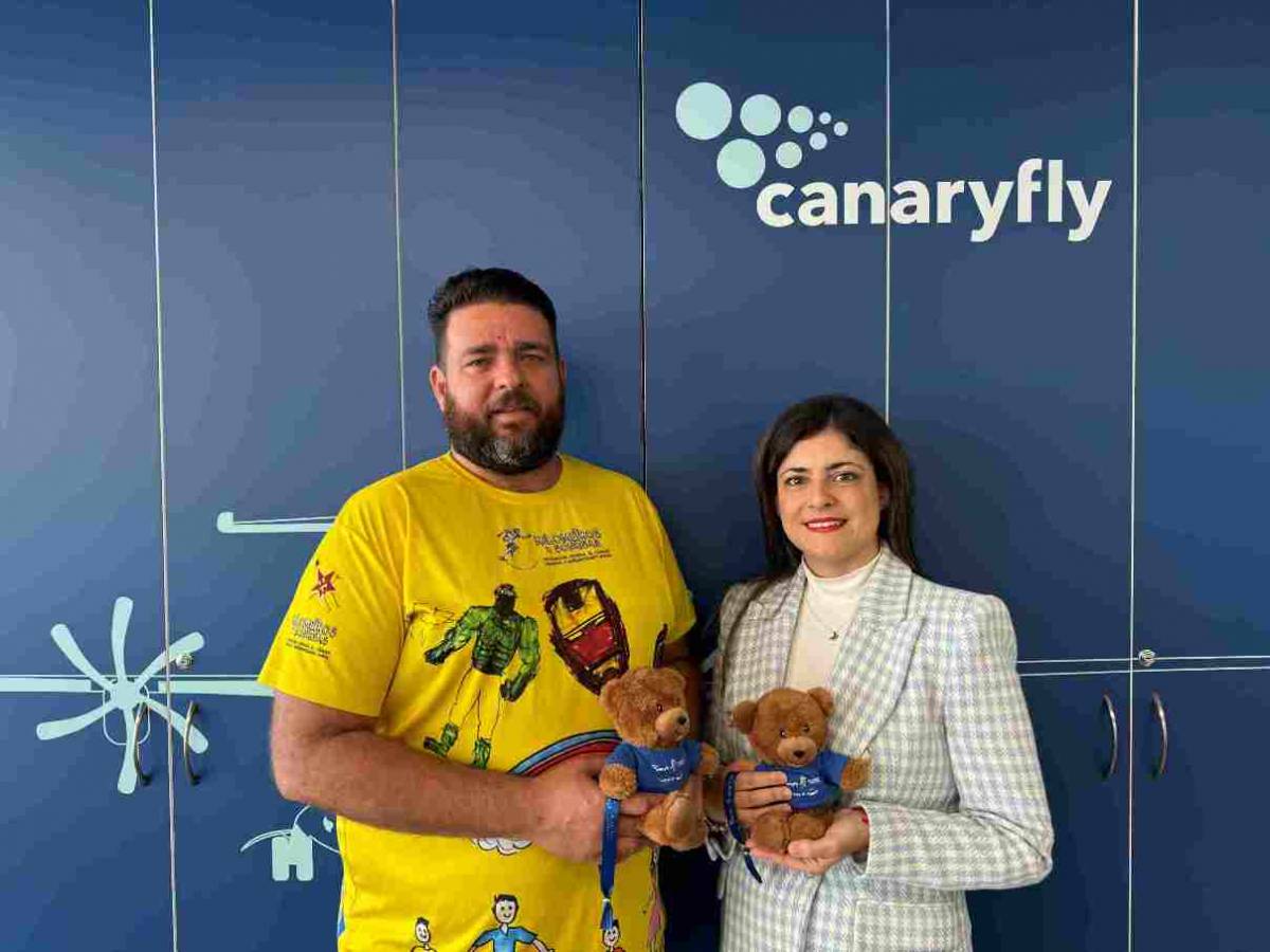 La aerolínea Canaryfly y la asociación canaria Kilómetros x Sonrisas ponen en marcha una nueva edición de la campaña solidaria ‘Tu apoyo, su sonrisa’, con la que buscan dar respaldo a pacientes de oncología infantil y niños y niñas que sufren enfermedades raras, así como a sus familiares. La iniciativa, que arranca su segunda edición este 20 de marzo, tiene como objetivo recaudar fondos a través de la venta de osos de peluche y pulseras solidarias a bordo de los vuelos y en las oficinas de venta de la compañía en los aeropuertos canarios hasta agotar existencias.