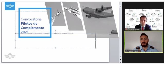 El Ejercito del Aire retoma su oferta pública de empleo en una convocatoria de plazas para ser piloto de complemento, una oportunidad laboral a la que solo pueden optar pilotos con grado universitario. Para dar a conocer las características de esta convocatoria, la Escuela de Pilotos Adventia, centro adscrito a la Universidad de Salamanca, ha celebrado la jornada telemática, organizada por la Dirección de Enseñanza del Ejército del Aire, sobre la ‘Convocatoria para Piloto de Complemento’ e impartida por el Capitán del Ejército de Aire, Álvaro Alejandre Tello.